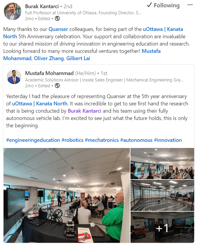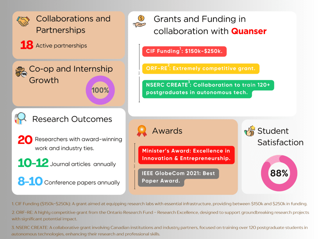 Adopting the Quanser ecosystem has had a transformative impact across multiple aspects, including co-op and internship placements, innovative research outcomes, awards and recognition, as well as securing grants.