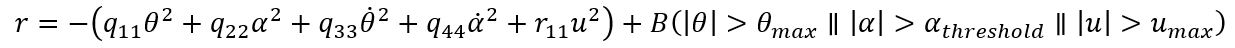 The reward function used for the Qube-Servo 3 rotary inverted pendulum is: